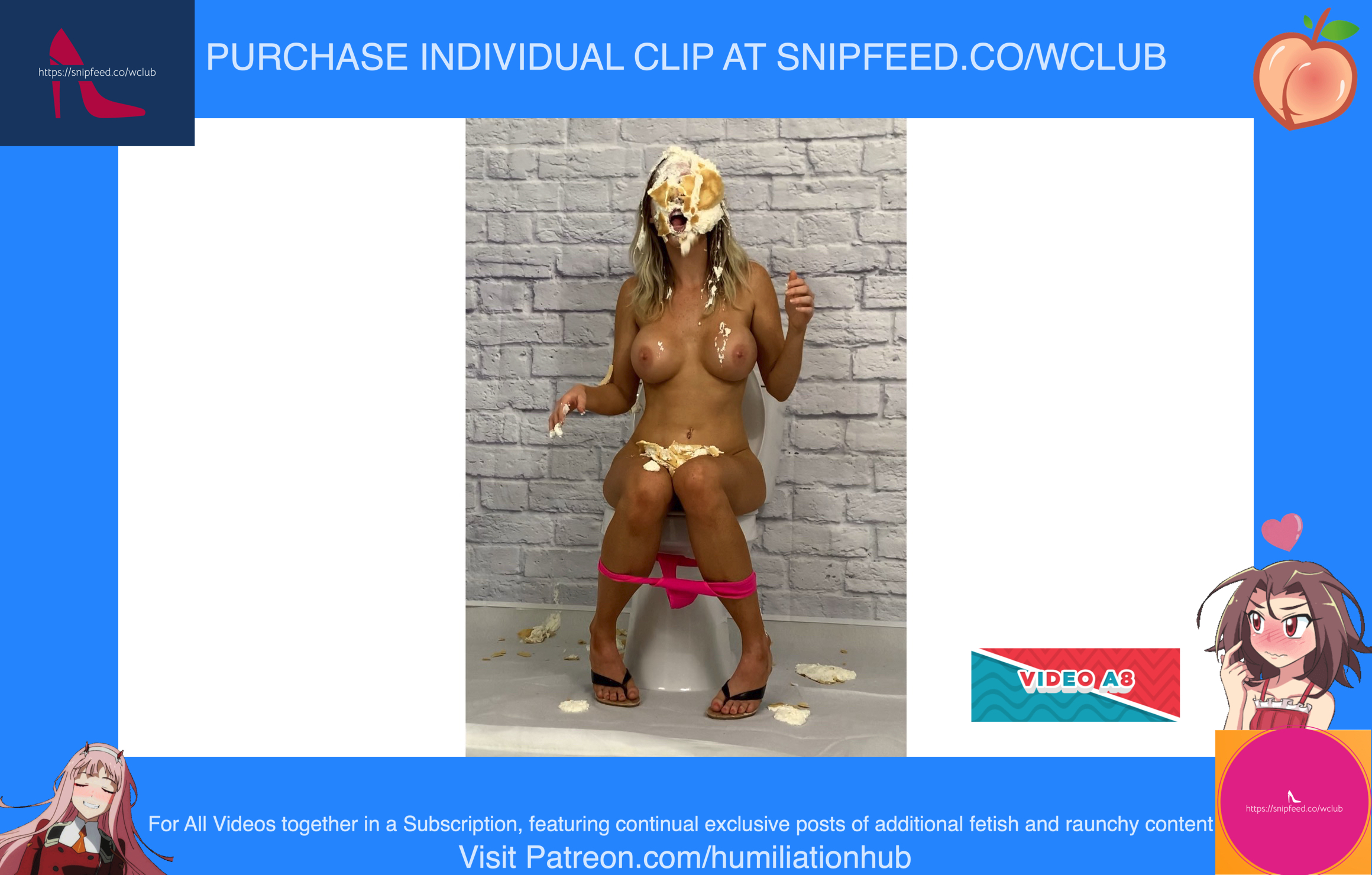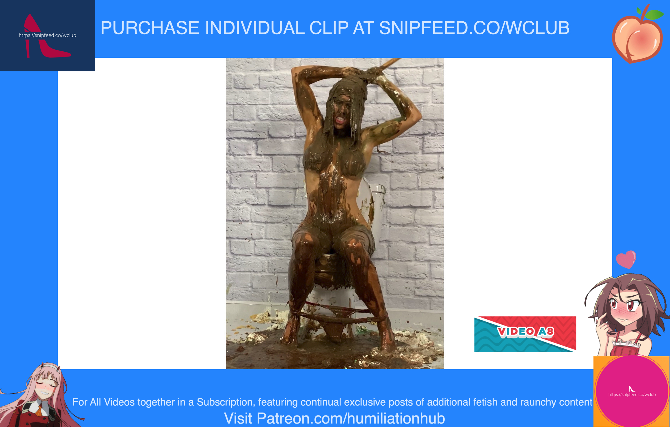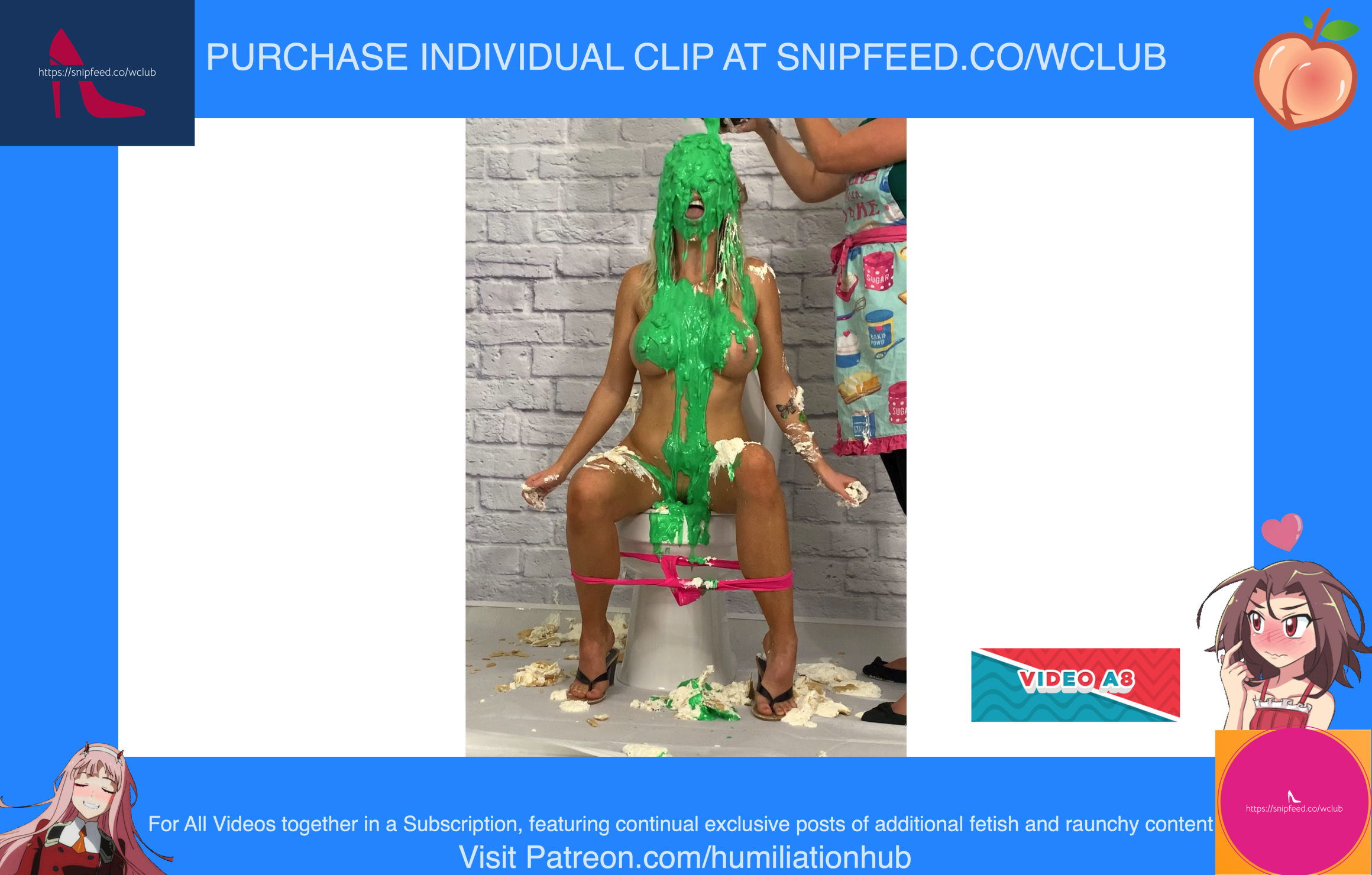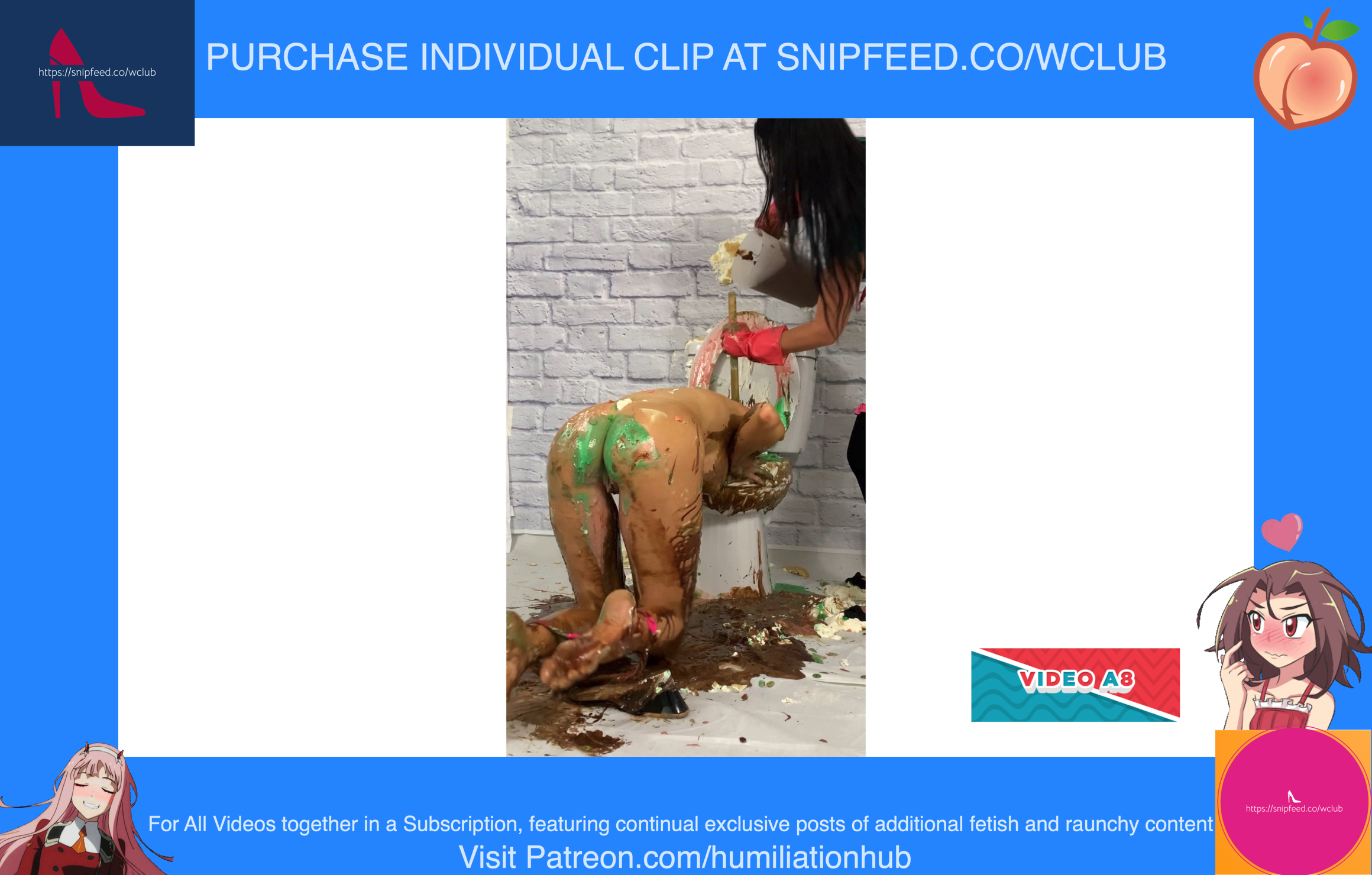 In the Restroom Scene, Layla tells Raven that she’ll follow her advice, sarcastically, and flush the desserts down the toilet. Unfortunately for Raven, that means she’ll get the brunt of the punishment. Raven's dress is torn off and she’s pied hard in the face to her surprise. Next comes a sloppy batter pour all over Raven, in addiction to pudding and chocolate syrup for an added touch. Layla tells Raven that the toilet looks like it’s backed up and she needs her help finding the clog. She pulls Raven’s hair by the hair and then shoves her head into the slop-filled toilet. She even uses the plunger on her back to get her head deep in. Now Raven is sitting on the toilet senseless and stupefied, but even worse she’s a total mess now as well with the plunger stuck on her head. Layla finally finishes her off by pouring a sloppy mix over her head.Epic messy humiliation!